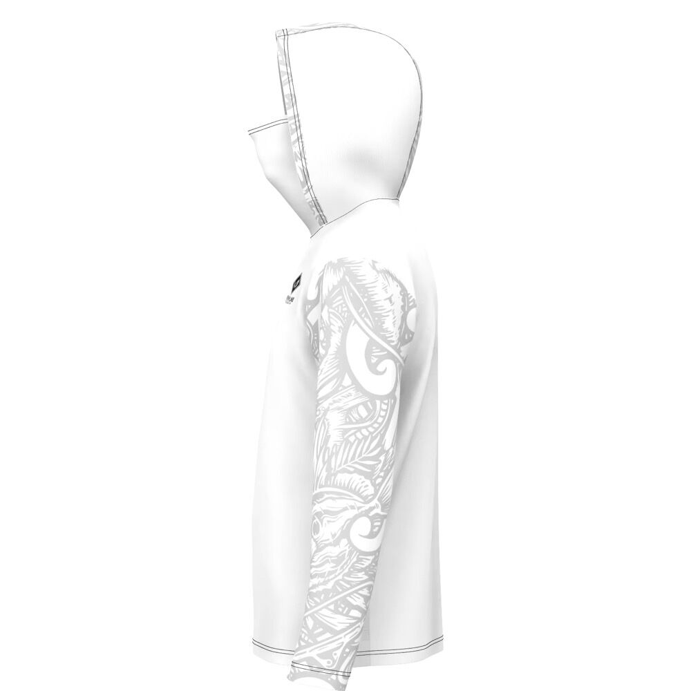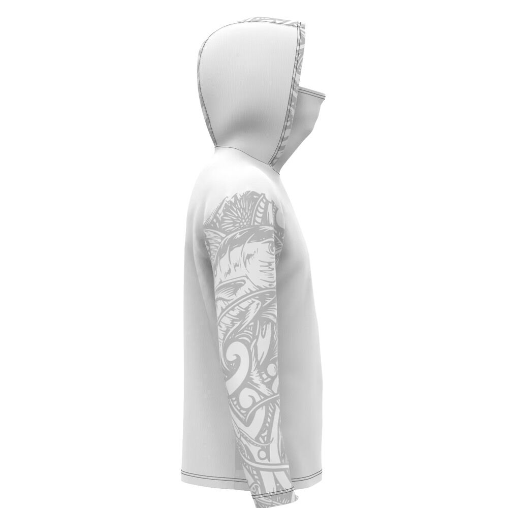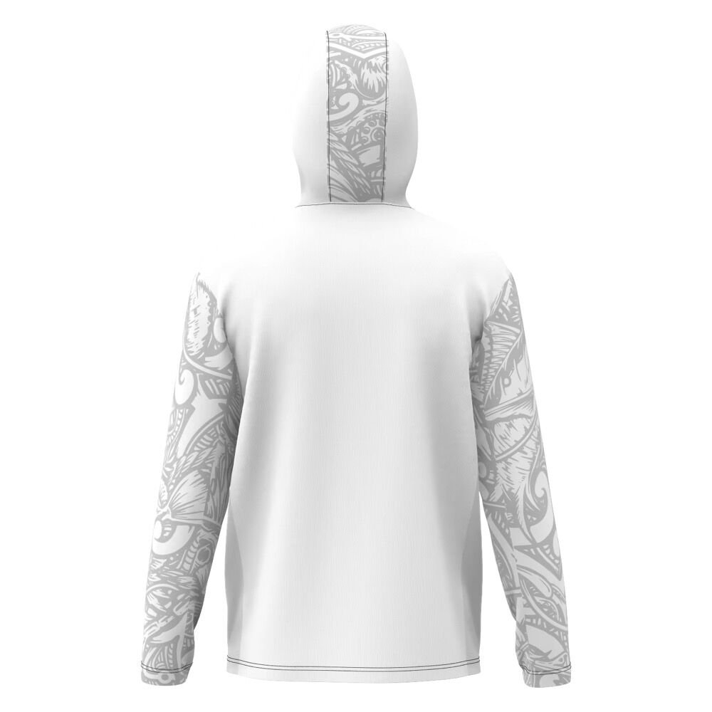 Engineered for serious anglers and intense sun exposure, this fishing hoodie combines built-in face protection, breathable mesh, and certified sun defense — all in one ultra-lightweight garment.